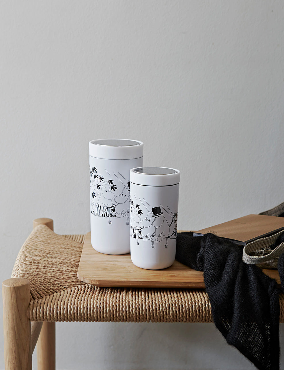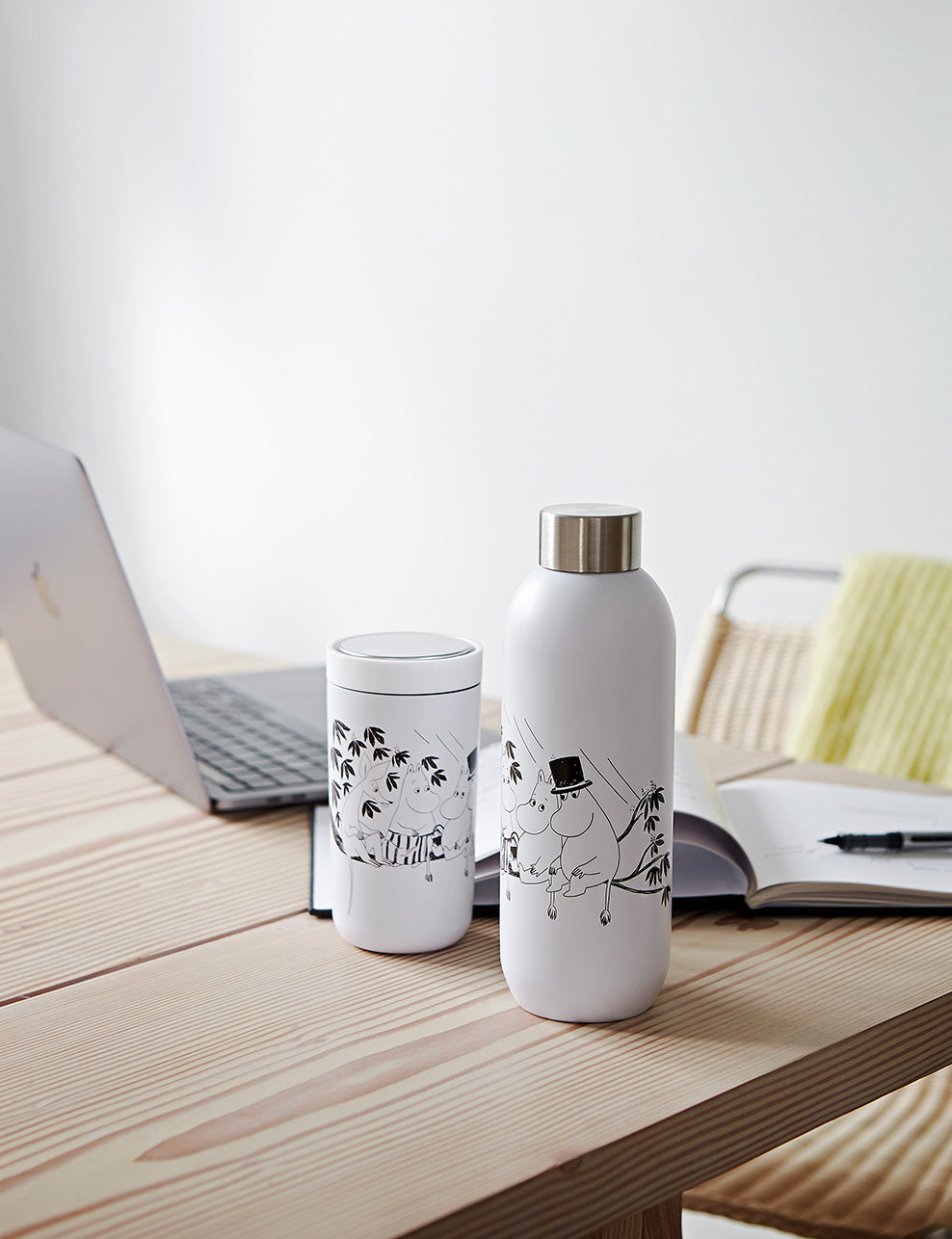 Die Stelton x Moomin To-Go-Becher und Trinkflaschen sind perfekt für ein aktives Leben, also mach dich mit der Muminfamilie auf und genieße dein eigenes mitgebrachtes Getränk in der Natur.