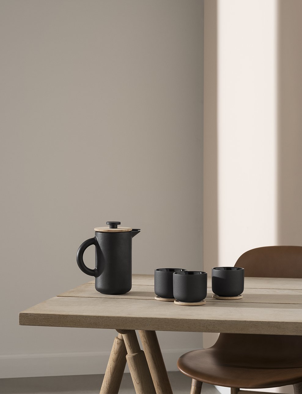 In unserem Sortiment gibt es verschiedene Ausführungen von Kaffeezubereitern mit dieser Methode. Der Theo Kaffeezubereiter ist aus mattschwarzem Steingut gefertigt und verbindet in seiner Formsprache skandinavisches Design mit einem asiatischen Stil. Wenn Sie ein Fan von schlichtem Design und strengen Linien sind, ist die weltberühmte EM77-Kanne auch in einer Pressstempelkannen-Ausführung erhältlich, sodass Sie Ihren aufgebrühten Kaffee direkt in diesem schönen Design genießen können.