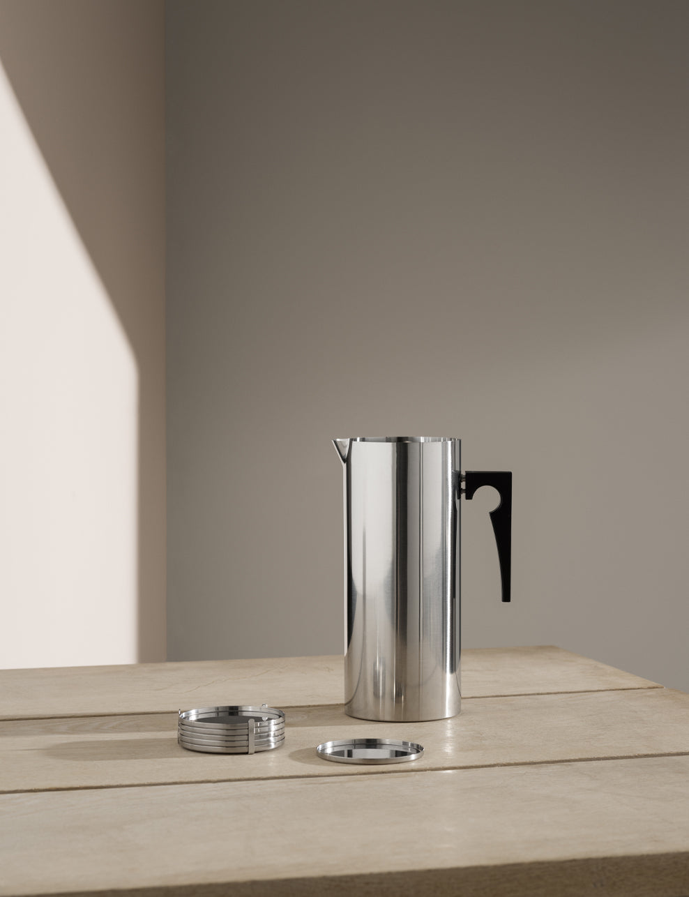 Die Geschichte der Cylinda-line begann an einem Frühlingsabend im Jahr 1964 bei einem Familienessen bei Arne Jacobsen. Der Stiefsohn von Arne Jacobsen, Peter Holmblad, der damals Eigentümer von Stelton war, wünschte sich von dass Arne Jacobsen sehnlichst den Entwurf einer kompletten Serie für Stelton. Die Serie sollte alles für die Hausbar enthalten, von Cocktail-Shakern bis hin zu Eiseimern und nicht zuletzt Aschenbechern, die damals ein wesentlicher Bestandteil einer Hausbar waren. Darüber hinaus sollte die Serie auch Produkte zum Servieren von Kaffee und Tee umfassen. Es gab nur ein Problem. Arne Jacobsen war ein sehr beschäftigter Mann.