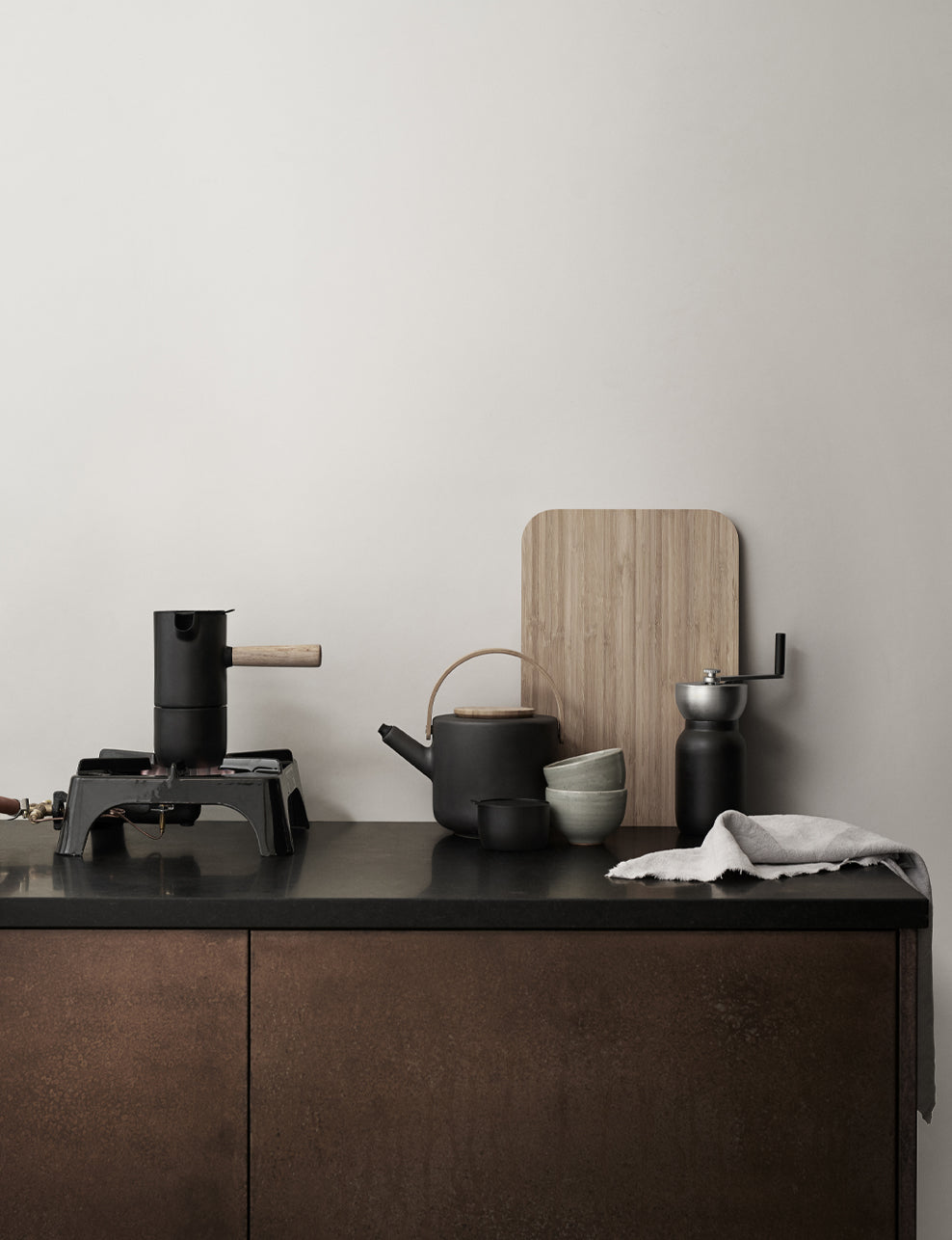 Guter Kaffee oder Tee erfordert eine gute Ausrüstung. Mit der Kaffeemühle und der Espressomaschine der Serie Collar ist schon die Zubereitung ein Genuss. Und mit der Kollektion Theo ist elegantes Servieren garantiert.