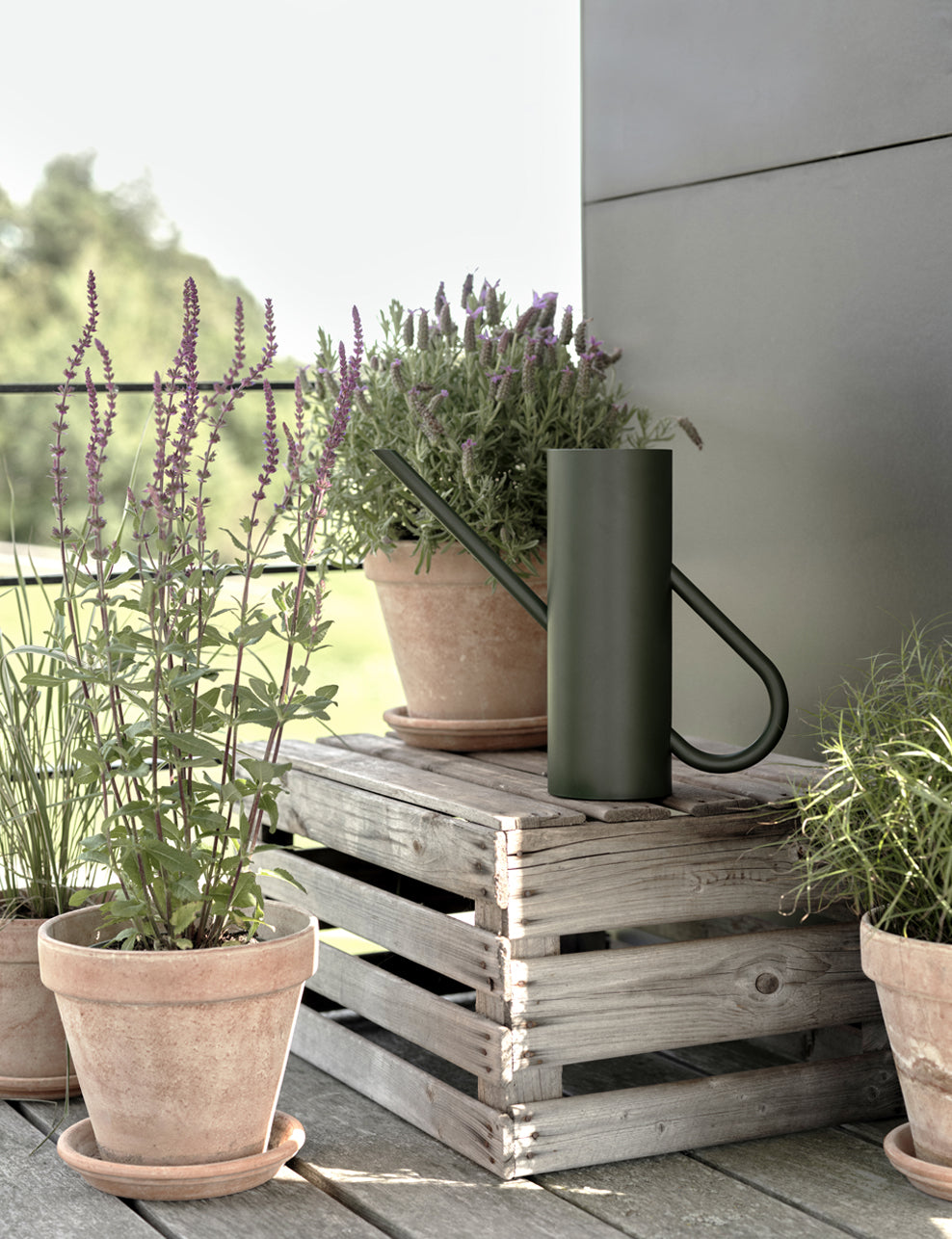 Dass Bewässerung stilvoll und praktisch sein kann, beweist die Gießkanne Bloom, der Designer Böttcher & Kayser, mit ihrer matten, dunkelgrünen Oberfläche. Die Formgebung erlaubt es, auch Pflanzen in kleinen Töpfen zu gießen. Durch ihre ästhetische Eleganz ist sie ein Blickfang zwischen den Pflanzen, denn sie wirkt wie ein Skulpturelement in Ihrer Heimdekoration.